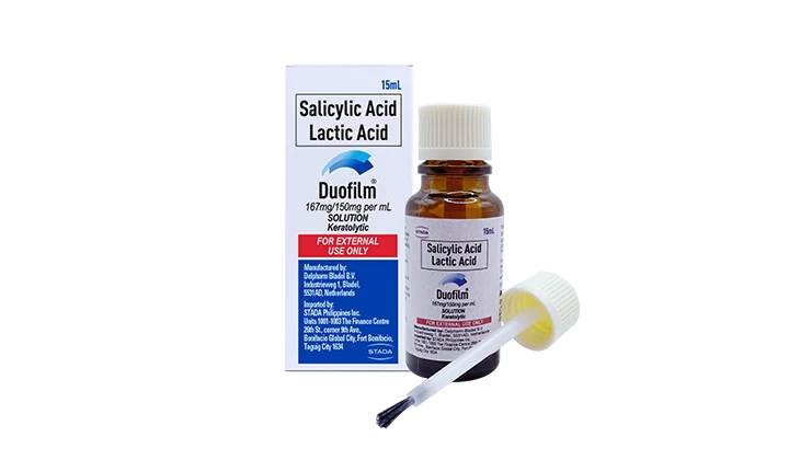 - Duofilm is a painless keratolytic solution that combines the dual power of Salicylic Acid (16.7%) and Lactic Acid (15%) to remove warts, corns, calluses.